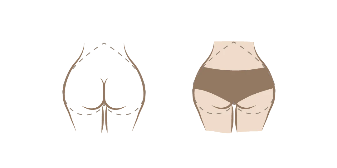 V型のお尻は、骨盤とヒップのラインが「V」字形をしています。通常、ヒップが平らで、視覚的に垂れた印象を受けやすいです。