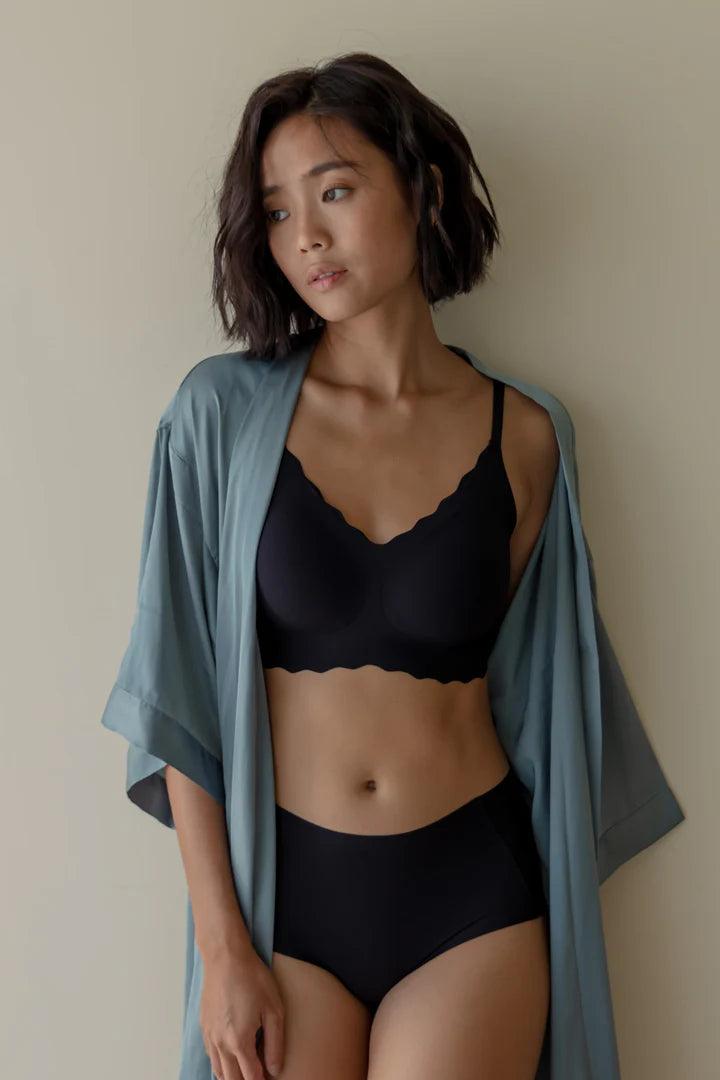 しっかり包容トライアングルブラ 上下セット|ブラック