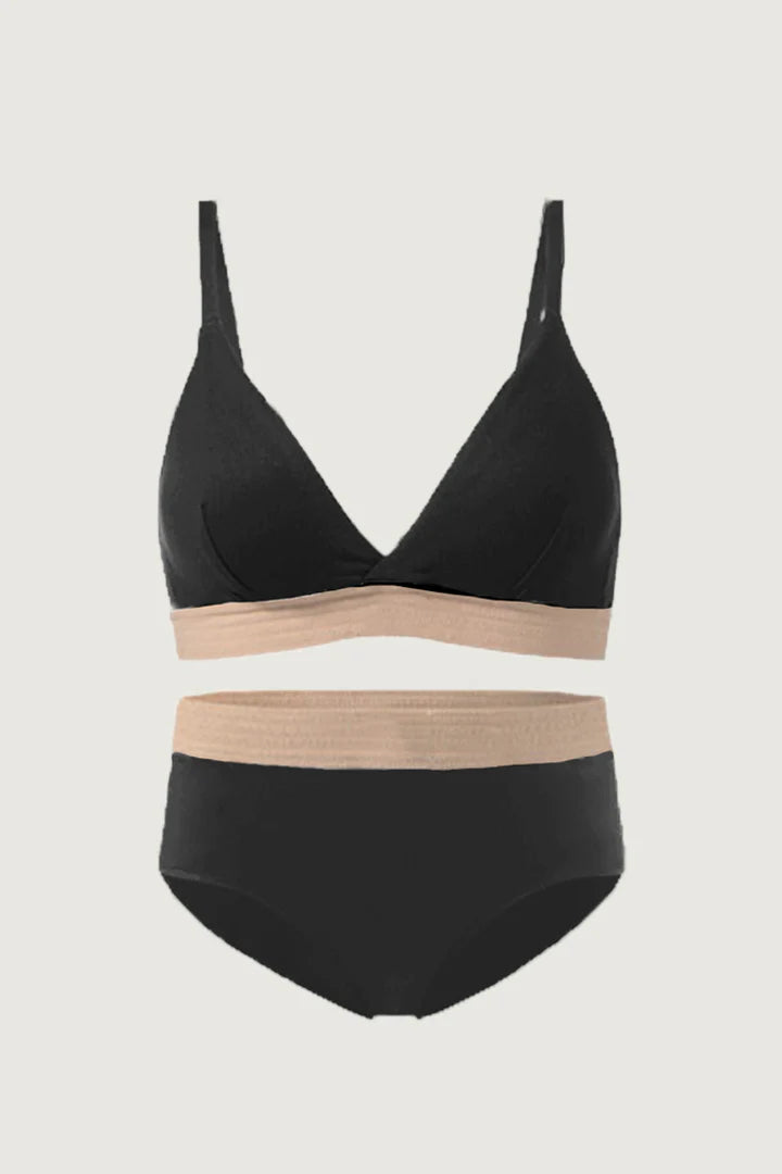 V 字バイカラートライアングルブラ 上下セット|ブラック