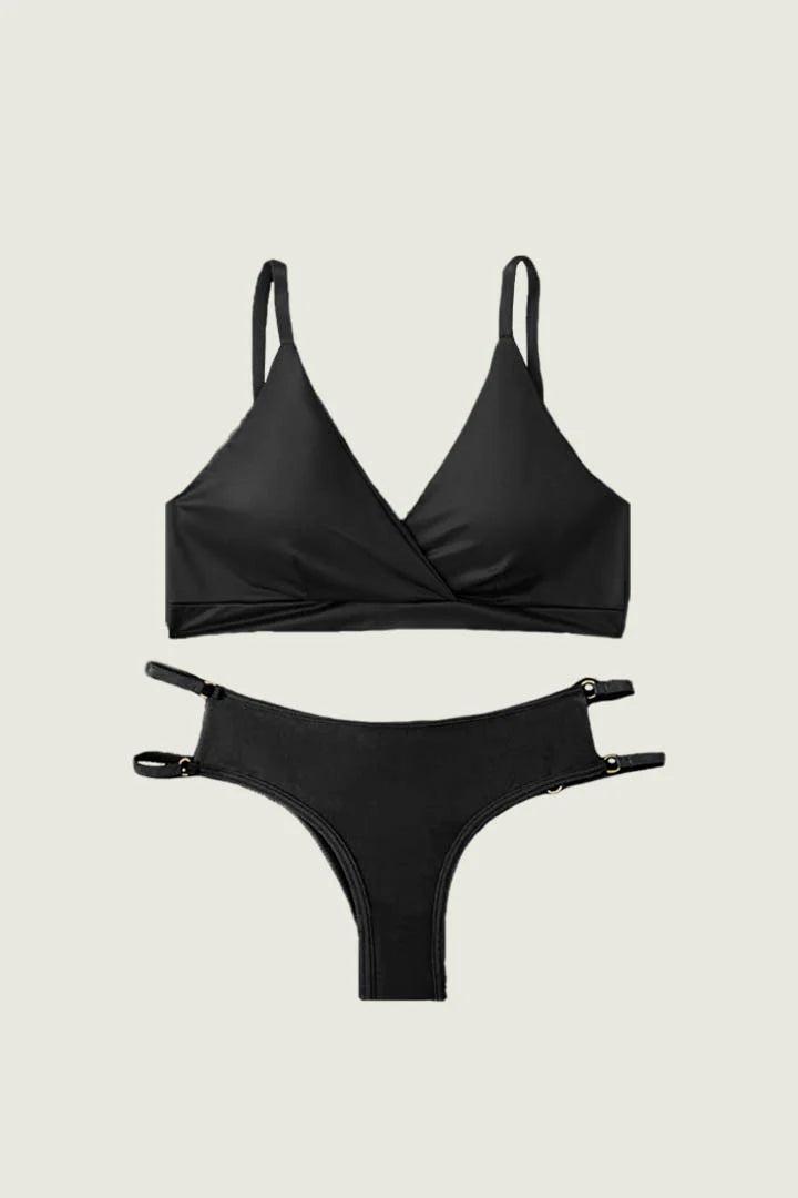 サテンリッチトライアングルブラ 上下セット|ブラック
