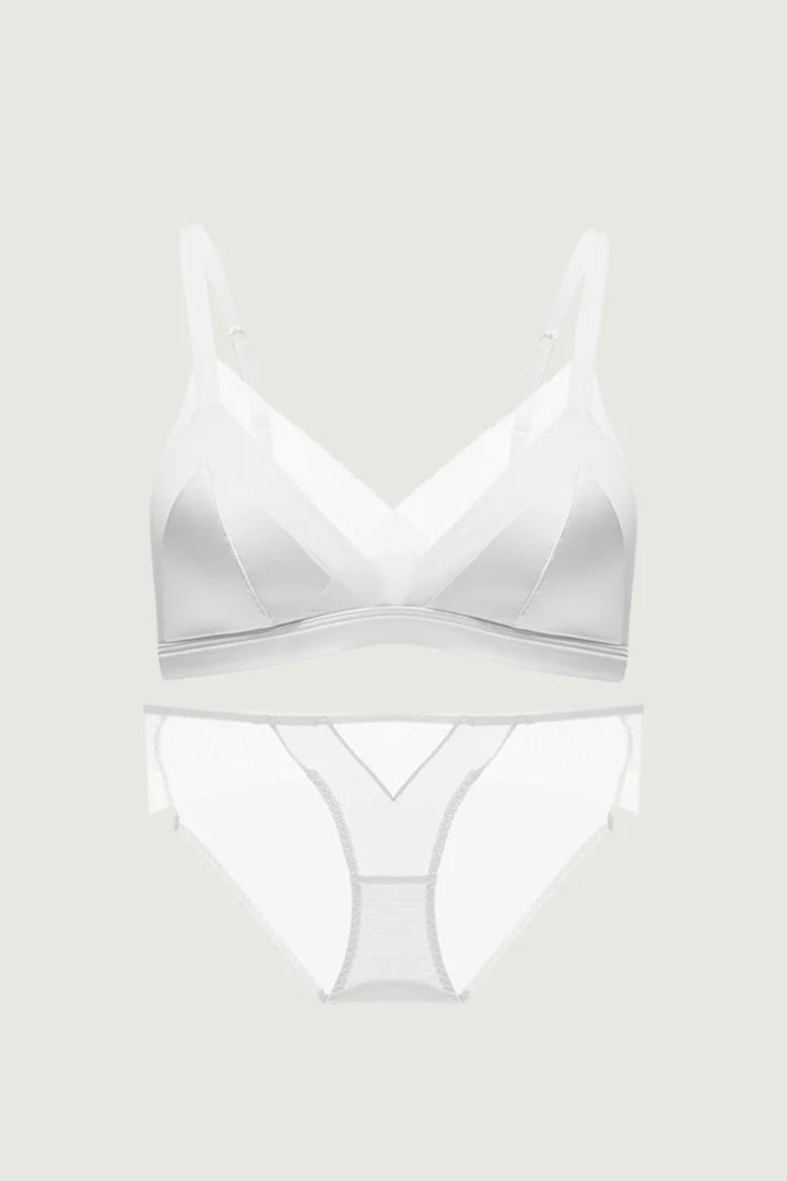 ソフトサポート美胸トライアングルブラ 上下セット|ヒースグレイ