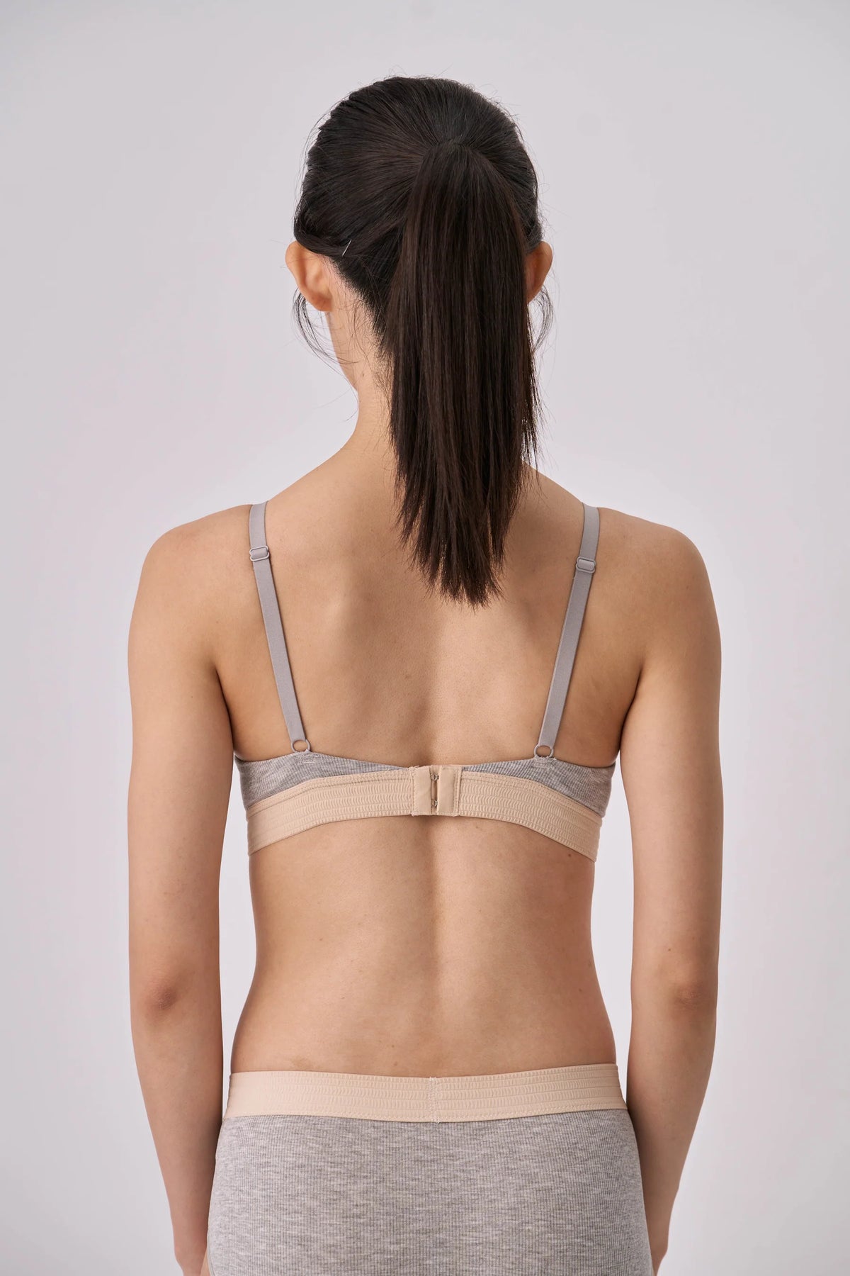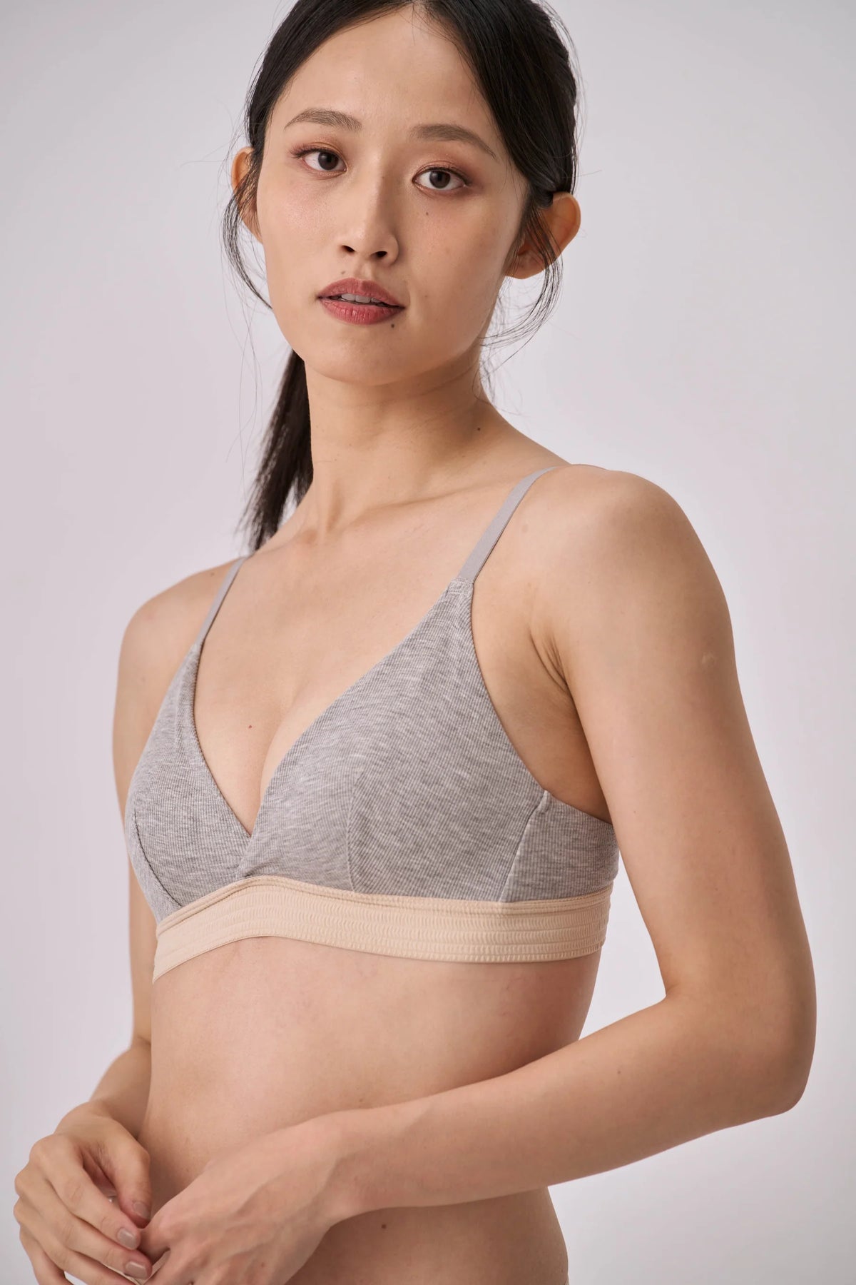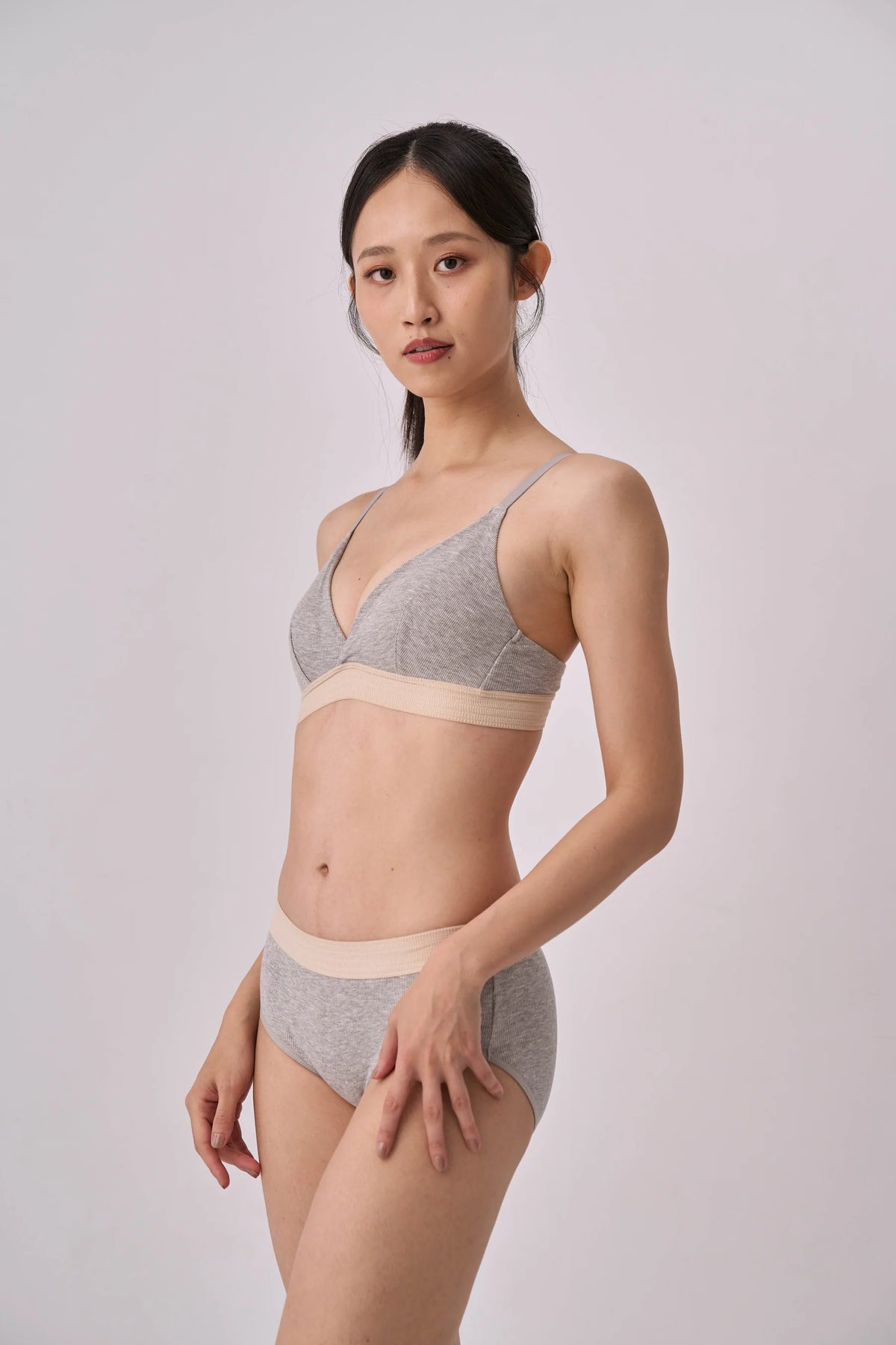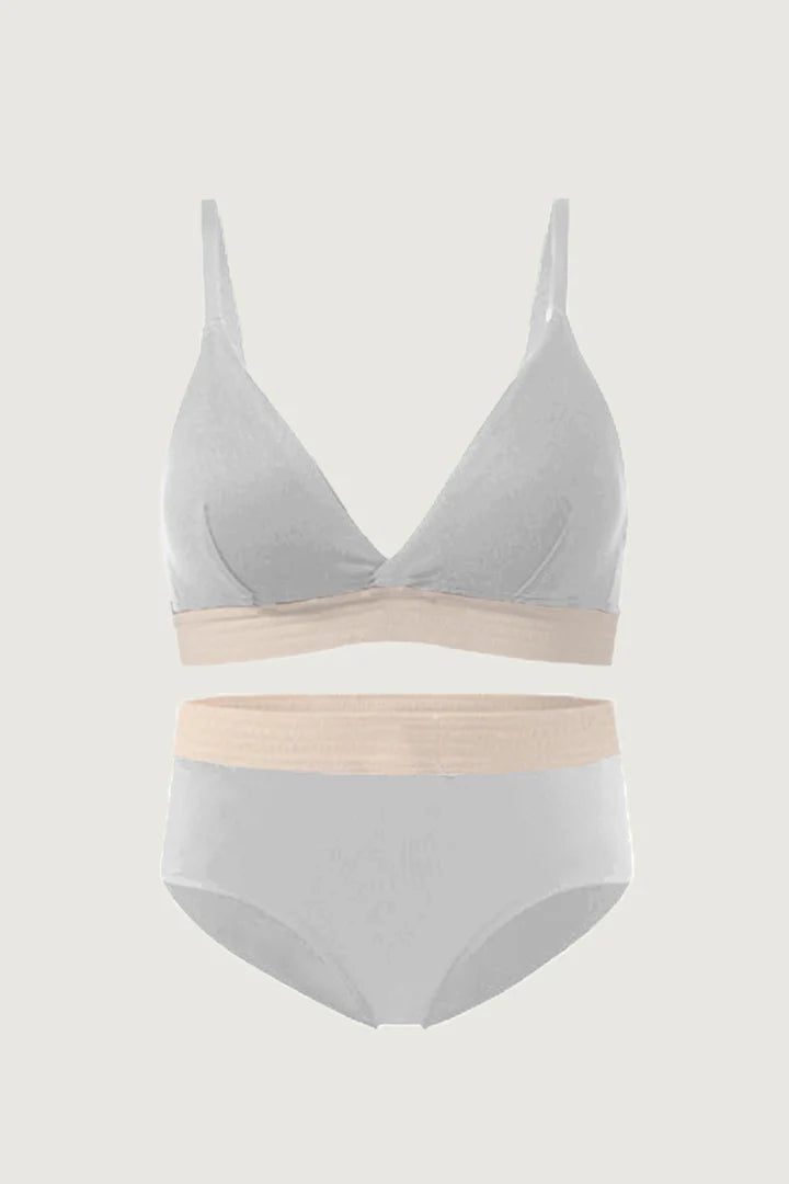 V字バイカラートライアングルブラ 上下セット|グレイ