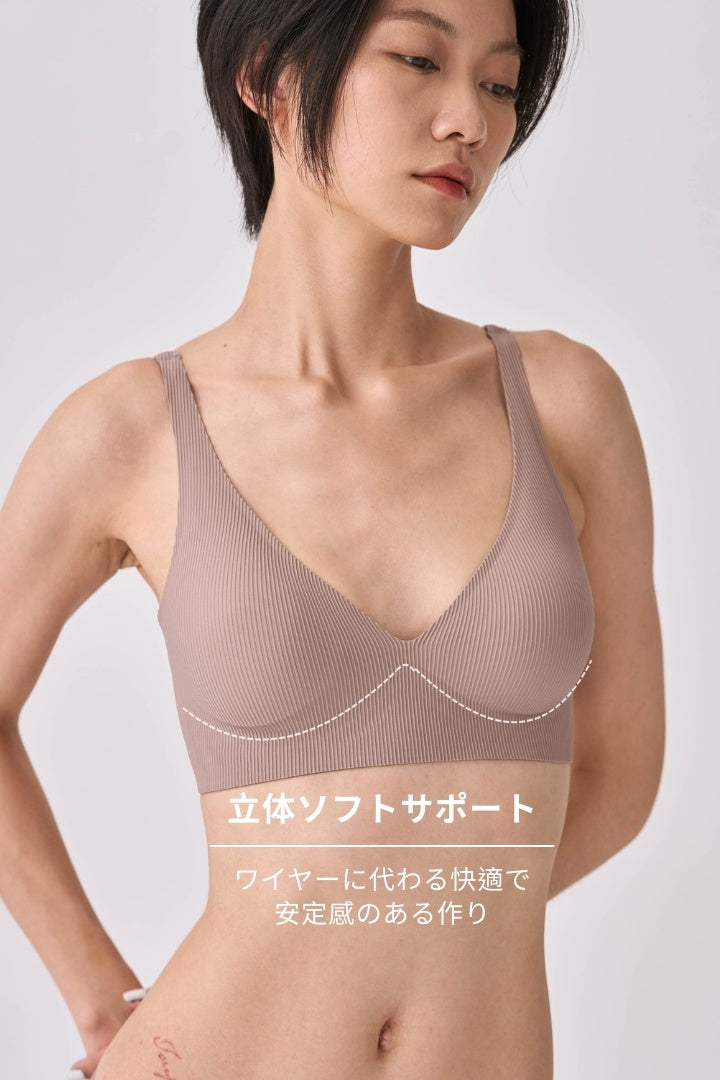 柔亮・リブソフトブラ|カフェベージュ
