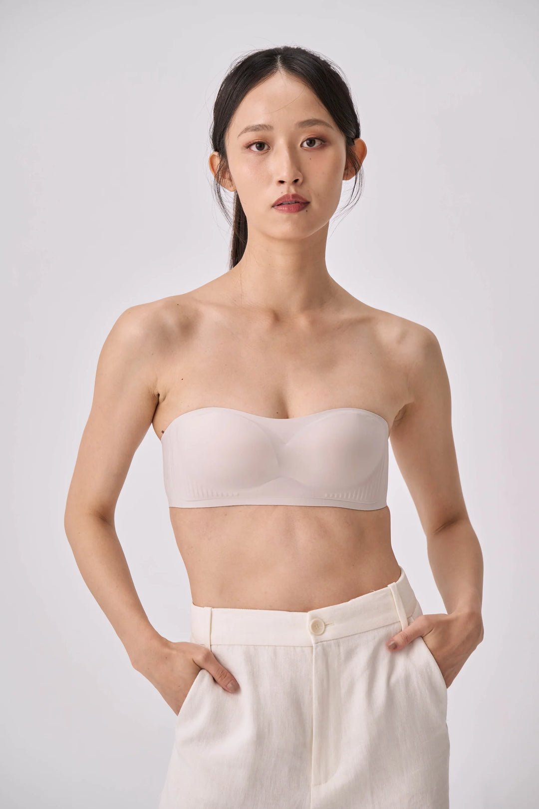 ダブル層ストラップレスブラ|ベージュ