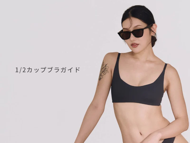 1/2カップのブラはバストの約50%をカバーします。